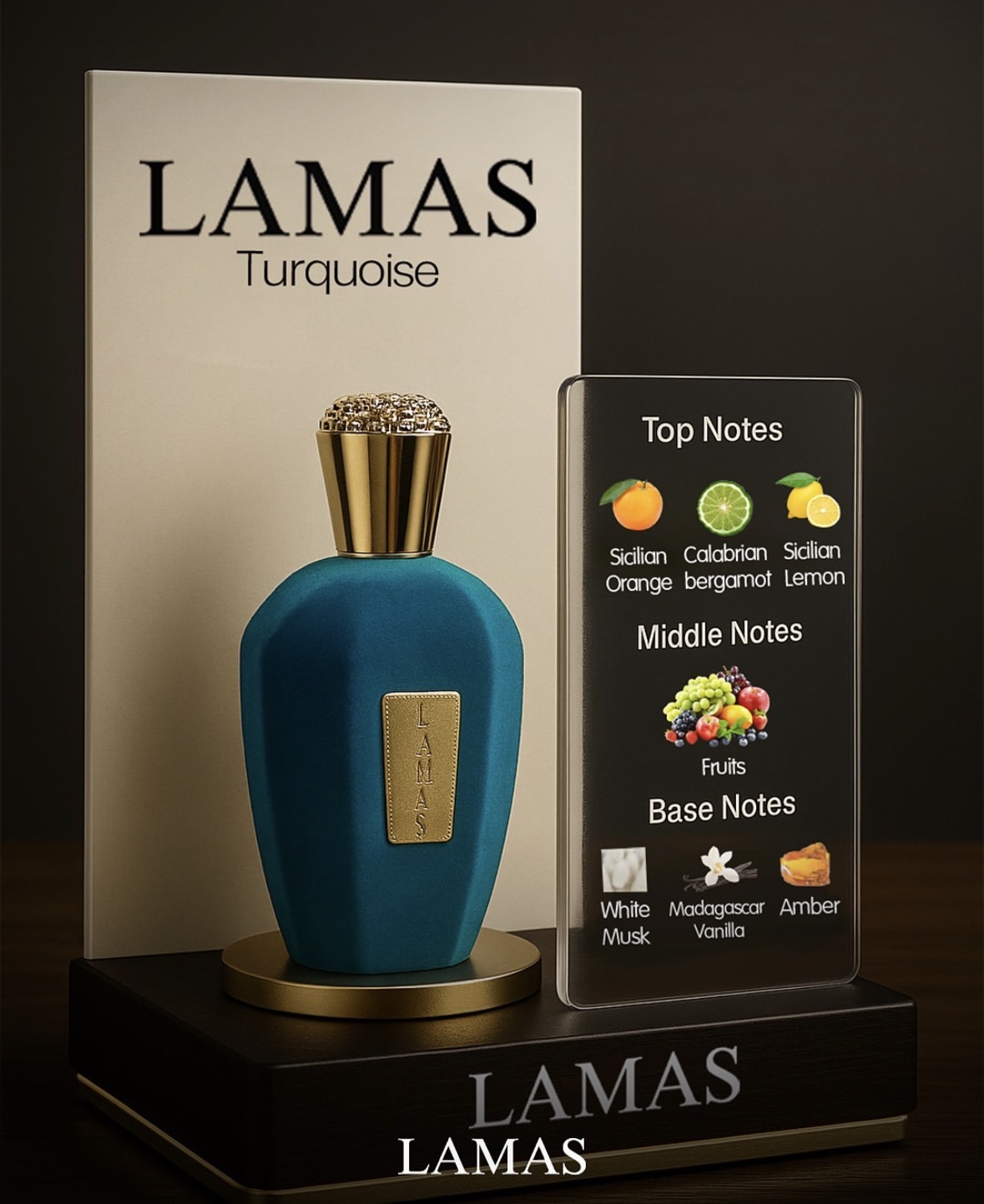 Lamas Turkuaz est un mélange de musc de grenade et de patchouli, un parfum riche et sensuel. Le mélange grenade-patchouli est la combinaison parfaite de pases fruitées mais terreuses qui s’unissent magnifiquement pour créer un parfum unique.