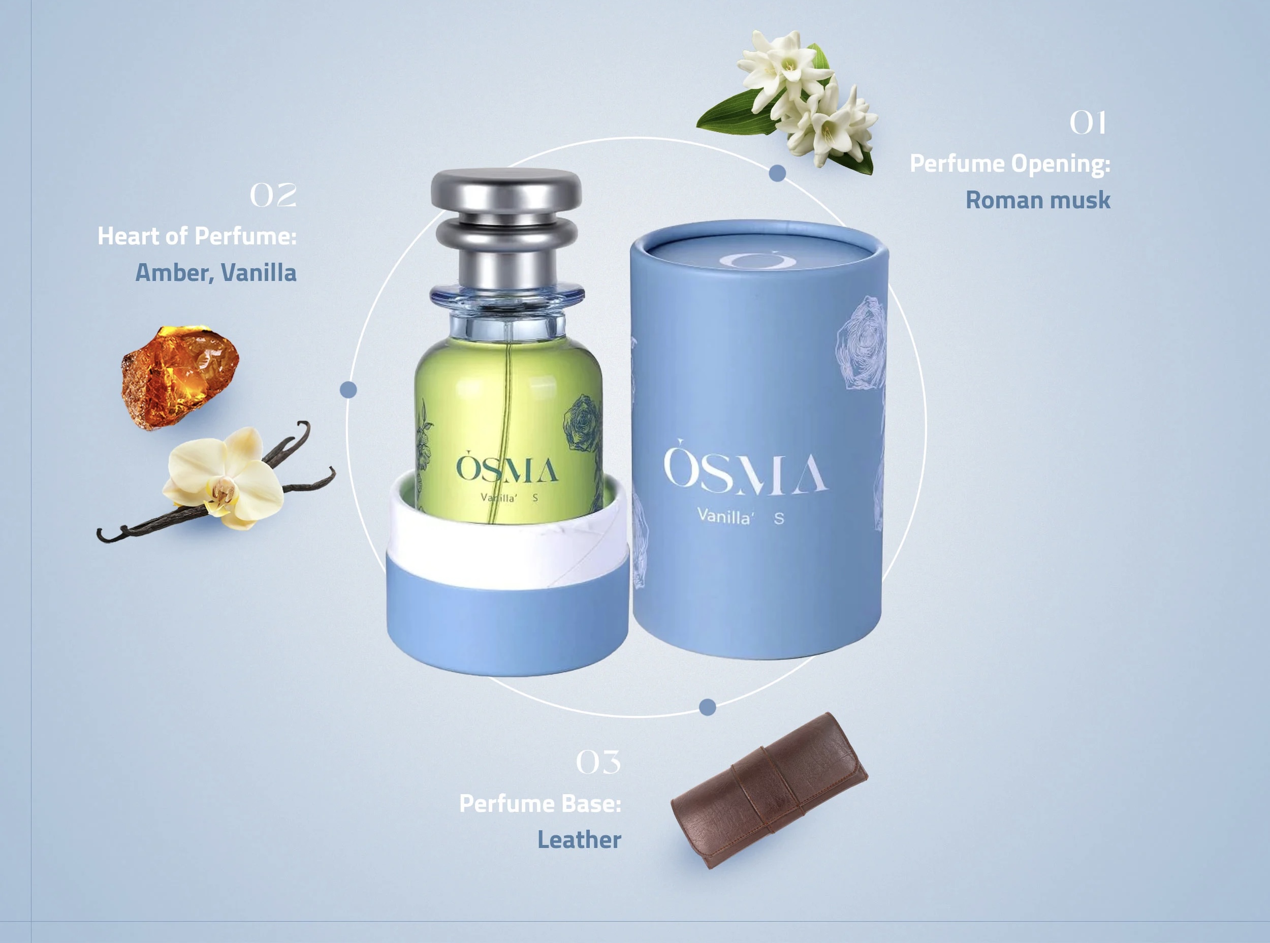 Découvrez l’élégance et l’attrait de Vanilla S by Osma, un parfum qui allie sophistication et charme dans un seul flacon complet.